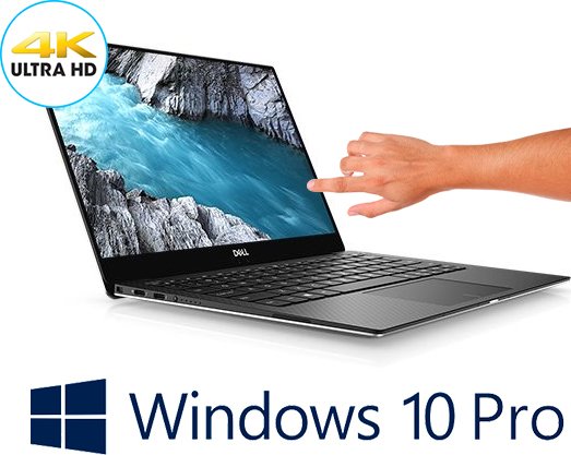 מחשב נייד כולל מסך מגע 4K מבית Dell בגודל 13.3 אינטש ברזולוצית UHD, מעבד Intel® Core™ i7-8550U 1.8GHz – 4.0GHz, זיכרון פנימי בנפח 16GB וכונן SSD בנפח 1TB