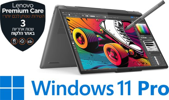 מחשב נייד עם מסך מגע מבית Lenovo בגודל "14 ברזולוציית WUXGA (1920×1200), מעבד Intel® Core™ Ultra 5 125U, זיכרון פנימי בנפח 16GB, כונן SSD בנפח 512GB וכולל מערכת הפעלה.
