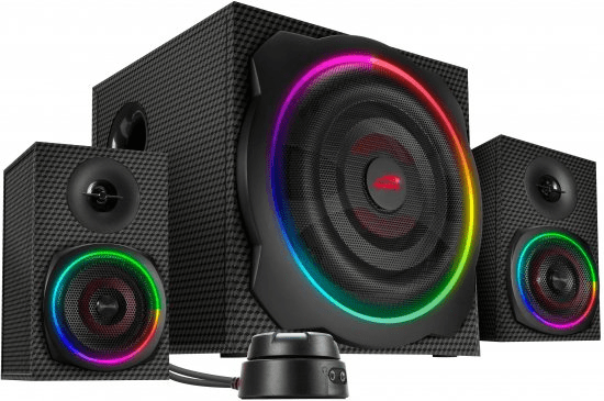 | SpeedLink Gravity Carbon RGB | 2.1 | 60W | 120W | 40Hzโ20kHz | โ | AUX, Bluetooth | RGB 16.8M ืฆืืขืื | โช330 |